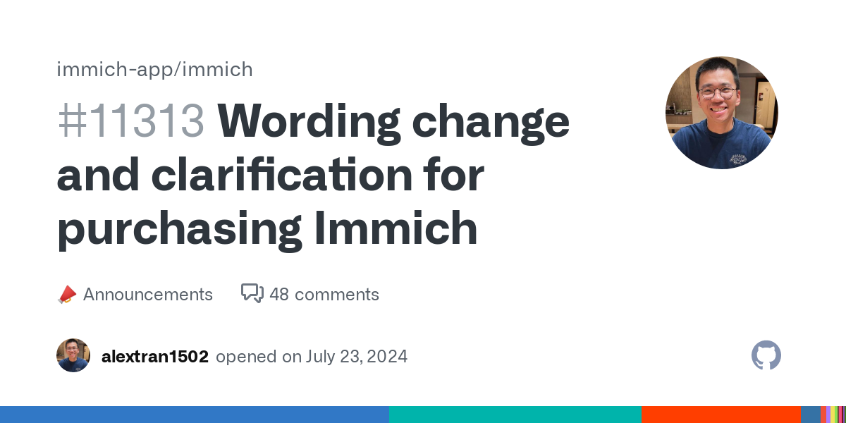 That is the fundamemental change in the way they are offering Immich: if you pay, you are provided with proof of ownership (product key). If you don’t, you are using it as a part of an indefinent trial period.