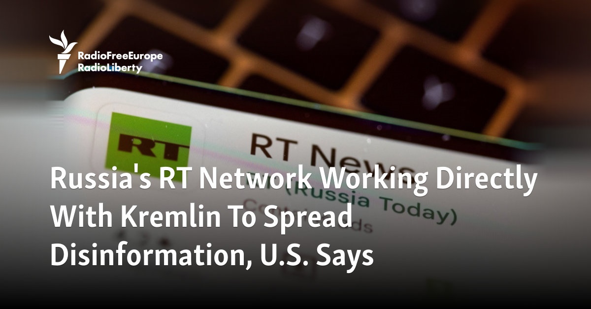 The United States on September 13 said the Russian news outlet RT is taking orders directly from the Kremlin and working with Russian military intelligence to spread disinformation around the world to undermine democracies.