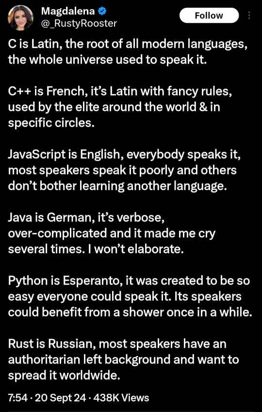 I’m not a java programmer, but I like it more because python and js projects are often very messy