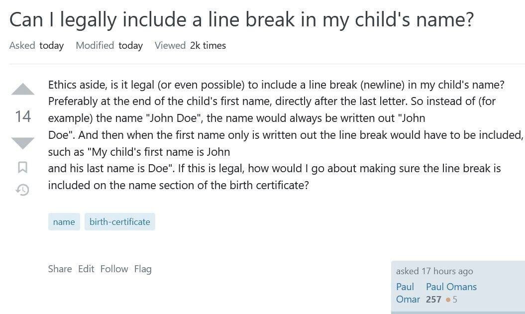 If someone else has to debug the problems caused by a parent naming their child with a special character, does that make the parent the bugger? 🤔