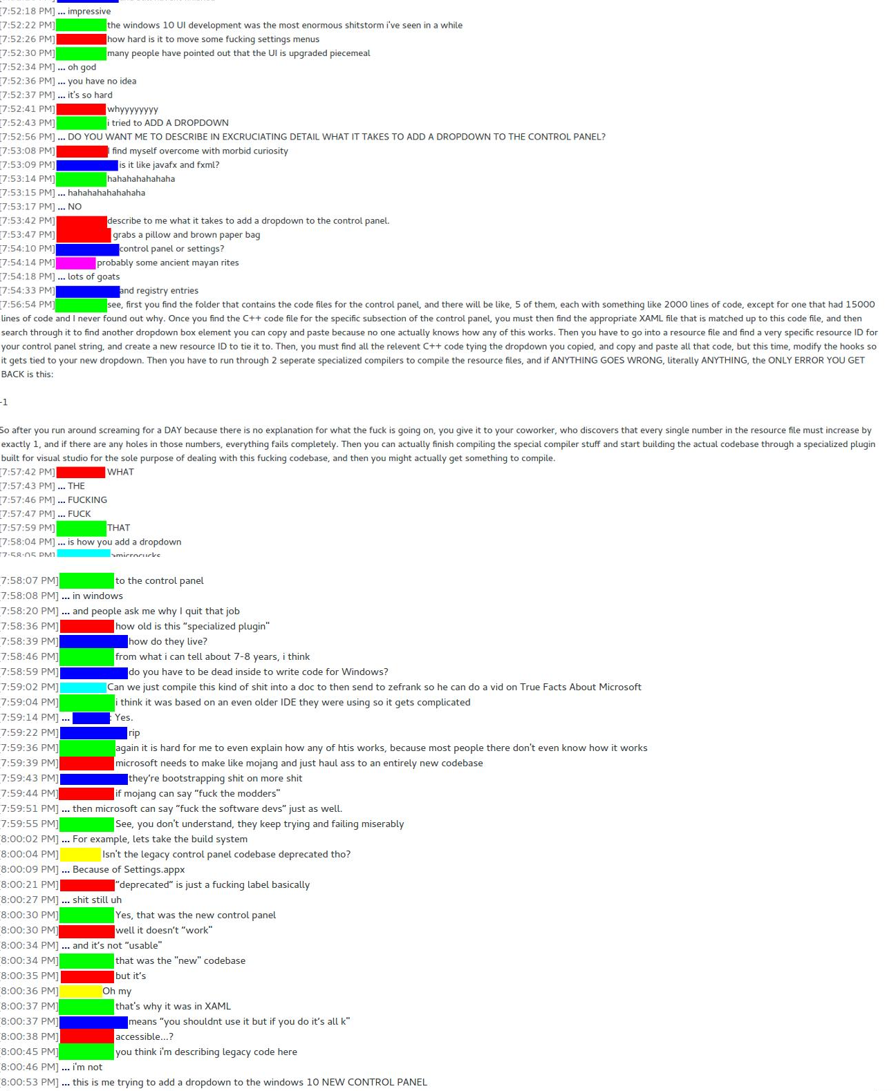 [7:52:22 PM] 🟩 the windows 10 UI development was the most enormous shitstorm i’ve seen in a while