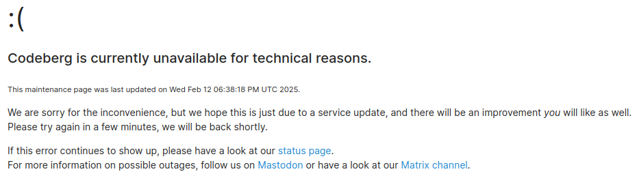 Codeberg is up again! And I got spammed too, does that mean I’m a good FOSS developer? 😳