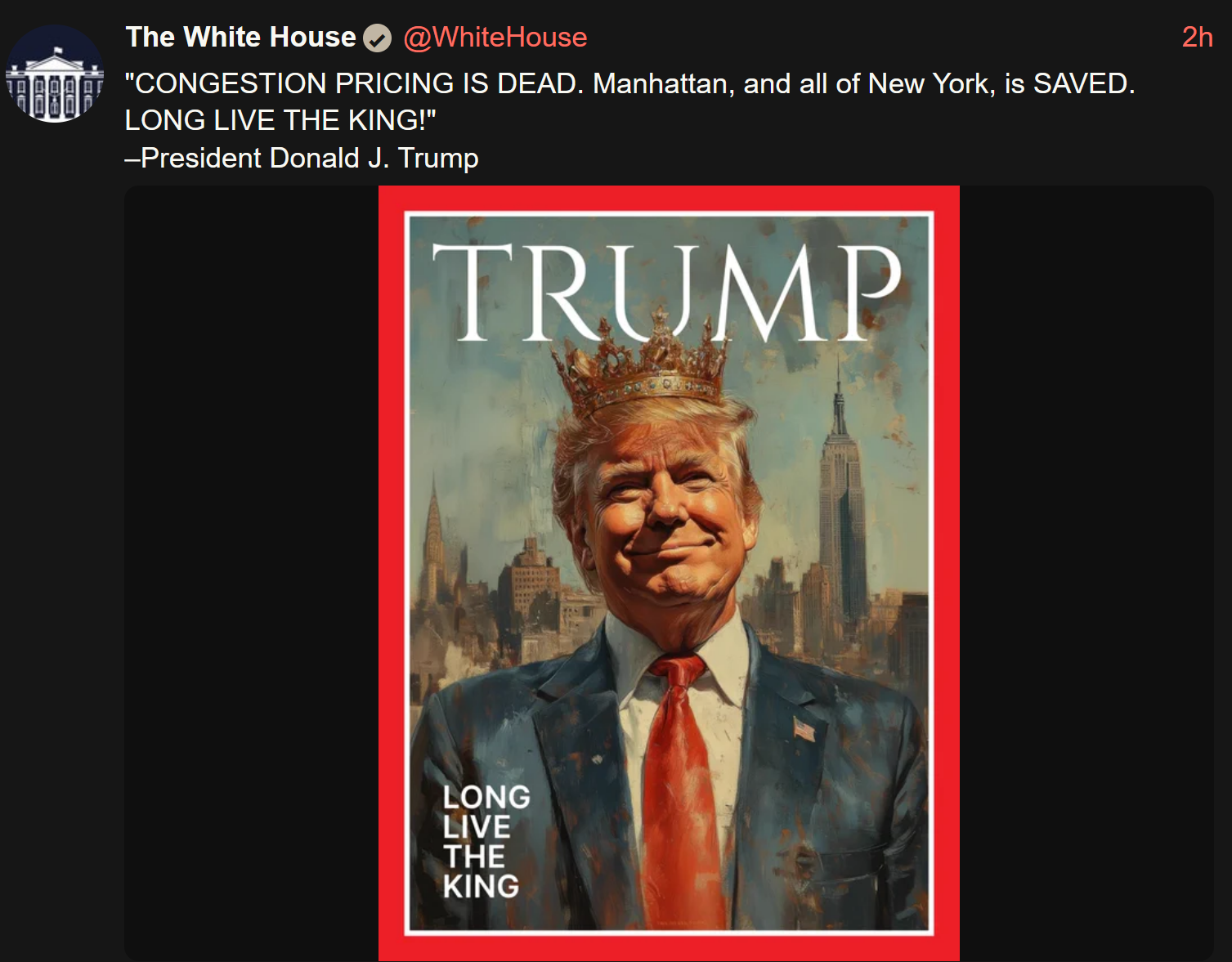Edit: the tweet is still up on the White House Twitter account @whitehouse as of 11:15am Eastern time on Feb 20th, 2025