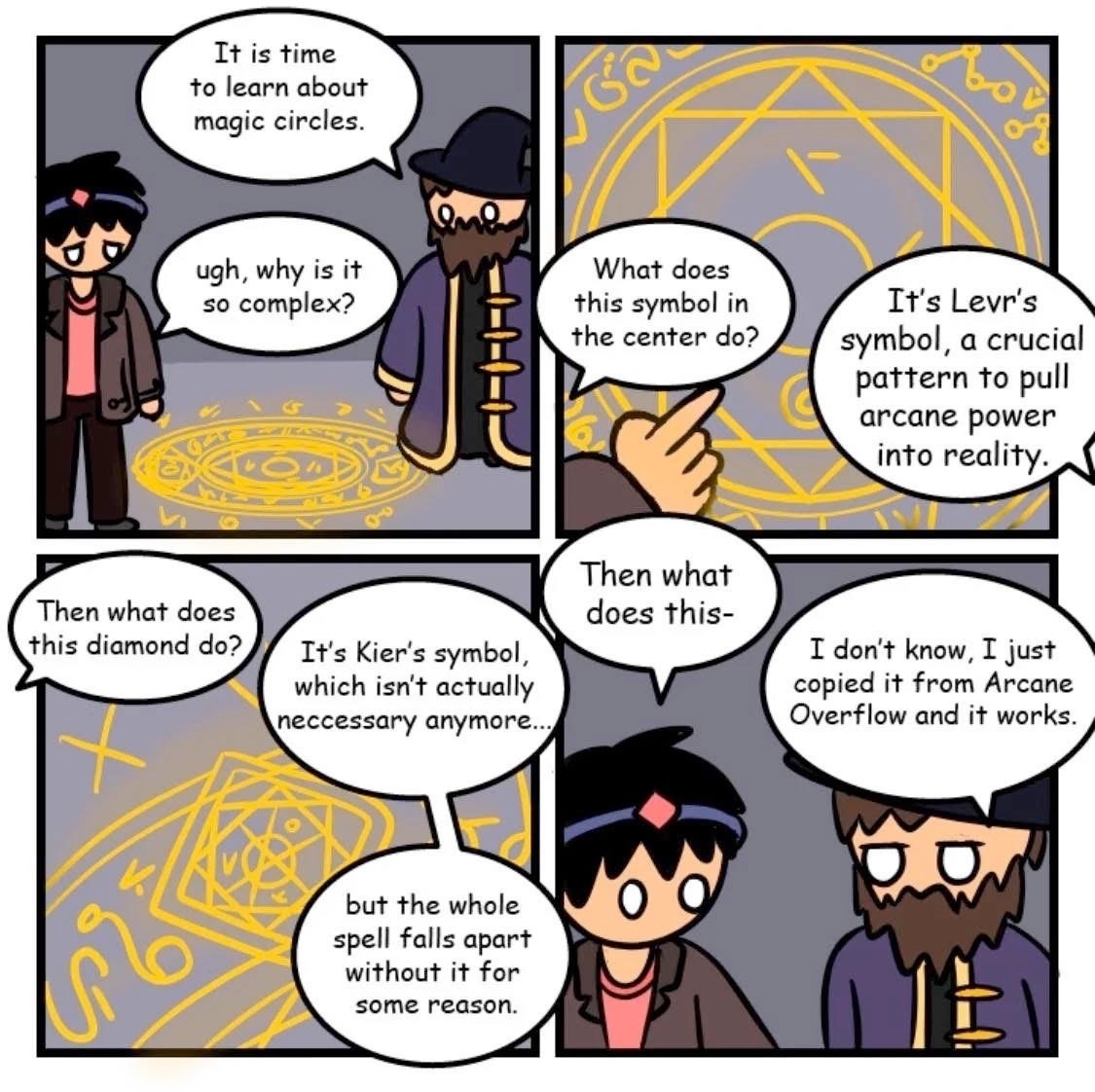 This would make a great little lore item in some RPG to explain why there’s a spell list.