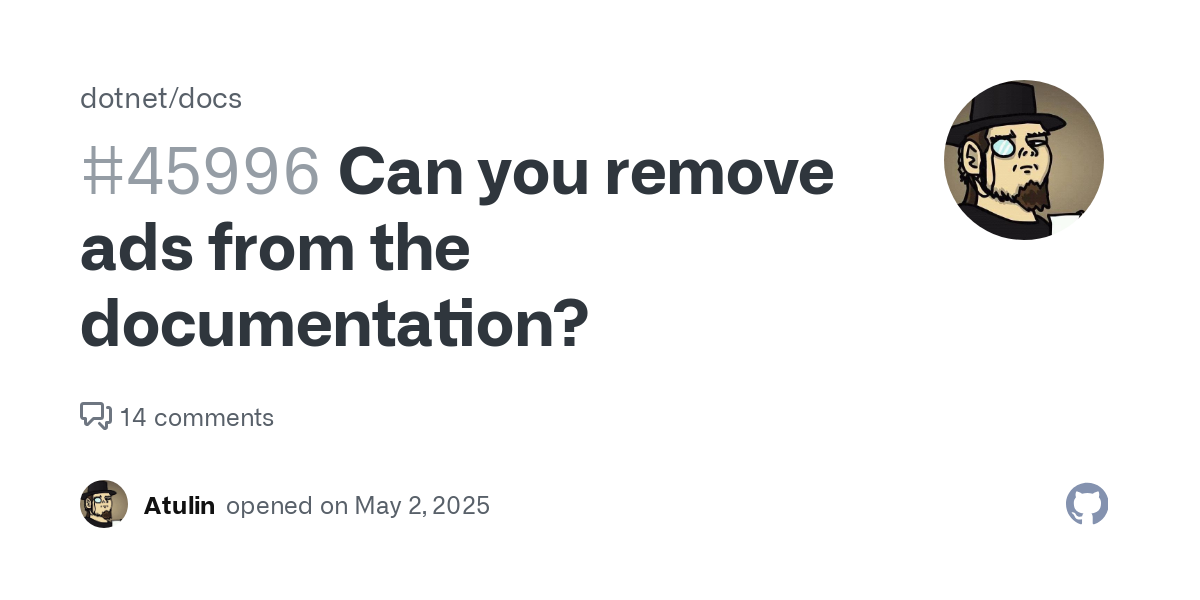 I mean, this user does quite eloquently raise a good point: https://github.com/dotnet/docs/issues/45996#issuecomment-2848267714