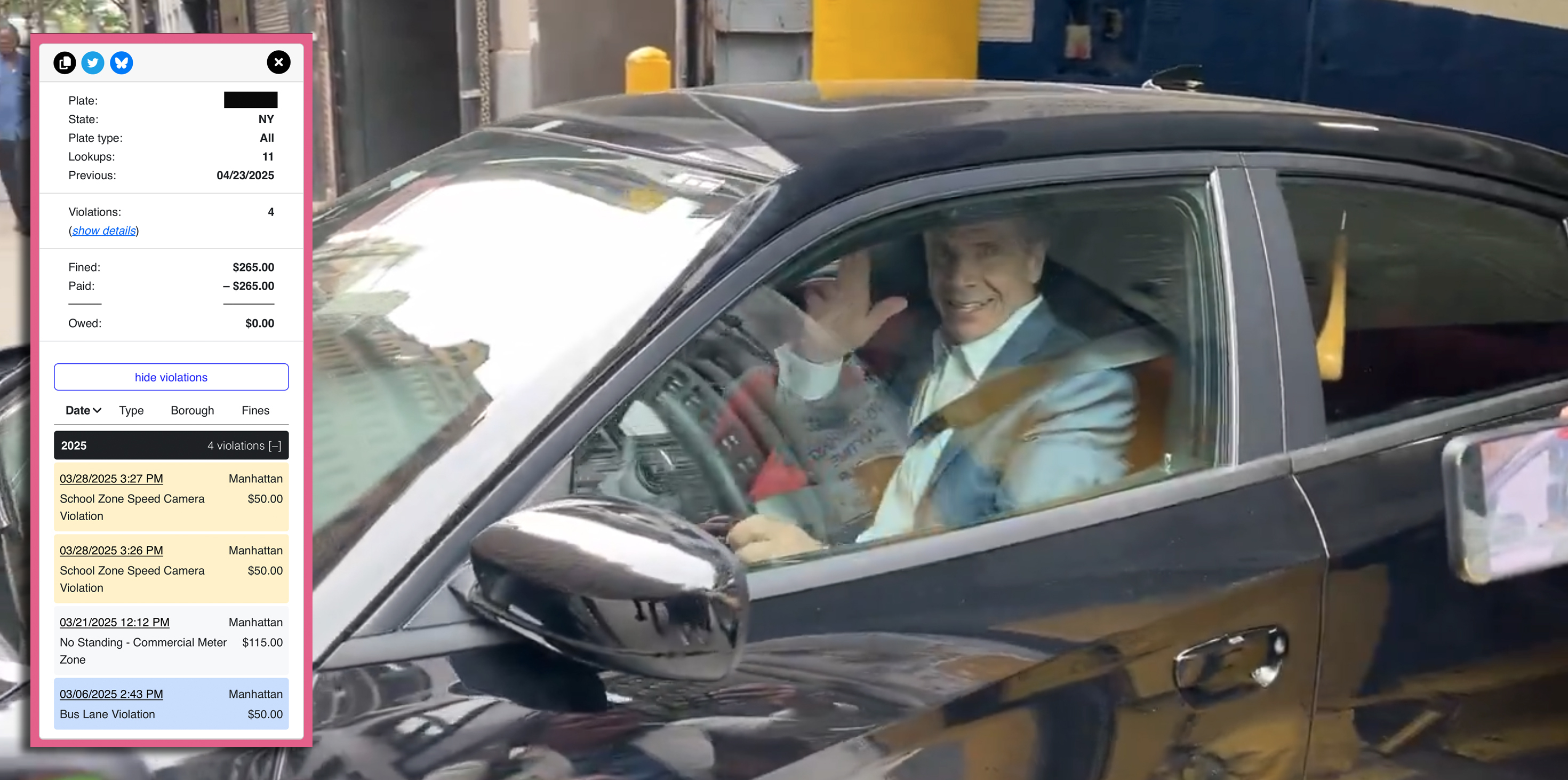 The Cuomo violation — which would result in a traffic ticket if it had been seen by a police officer, but in a criminal summons if he had been on a bike — followed the endorsement announcement.