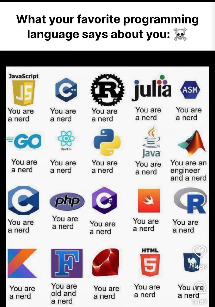 R still gives me chills, never hated a language until I had to use R in my PhD.