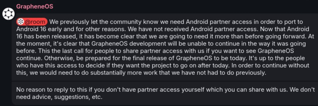 GrapheneOS statement on Mastodon: https://grapheneos.social/@GrapheneOS/114661914197695338