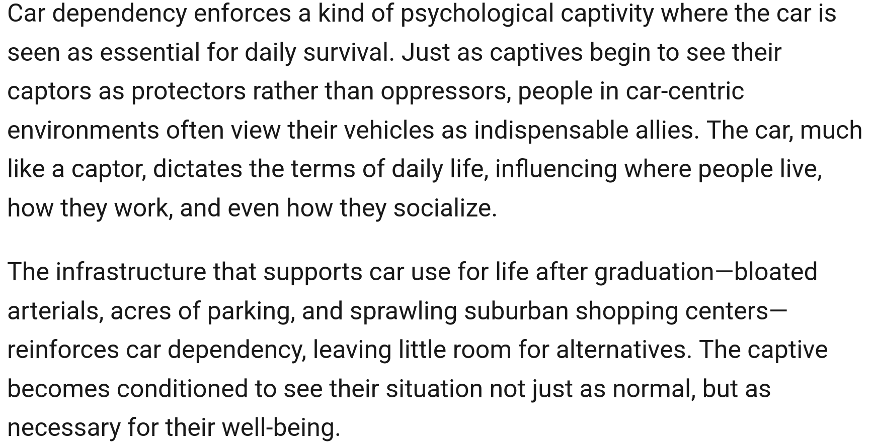 I’m totally here for all the things you said. But maybe 1 in 10 people where I am would even consider the idea. Carbrain has metastasized here, and it’s terminal.