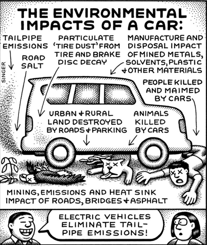 Valorizing EVs leads to perpetuating car centric designs, which is a negative across many dimensions - not only ecologically.