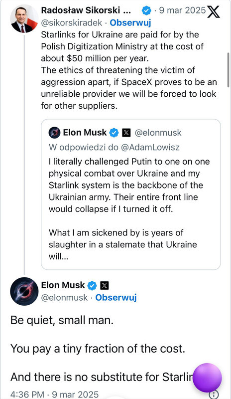 Blaze (he/him) @lemmy.dbzer0.com to Buy European@feddit.uk · edit-210 months agoReminder that an alternative for Starlink is needed, exchange between Musk and the Polish Minister of Foreign Affairsi.postimg.ccimagemessage-square12linkfedilinkarrow-up15arrow-down10file-text