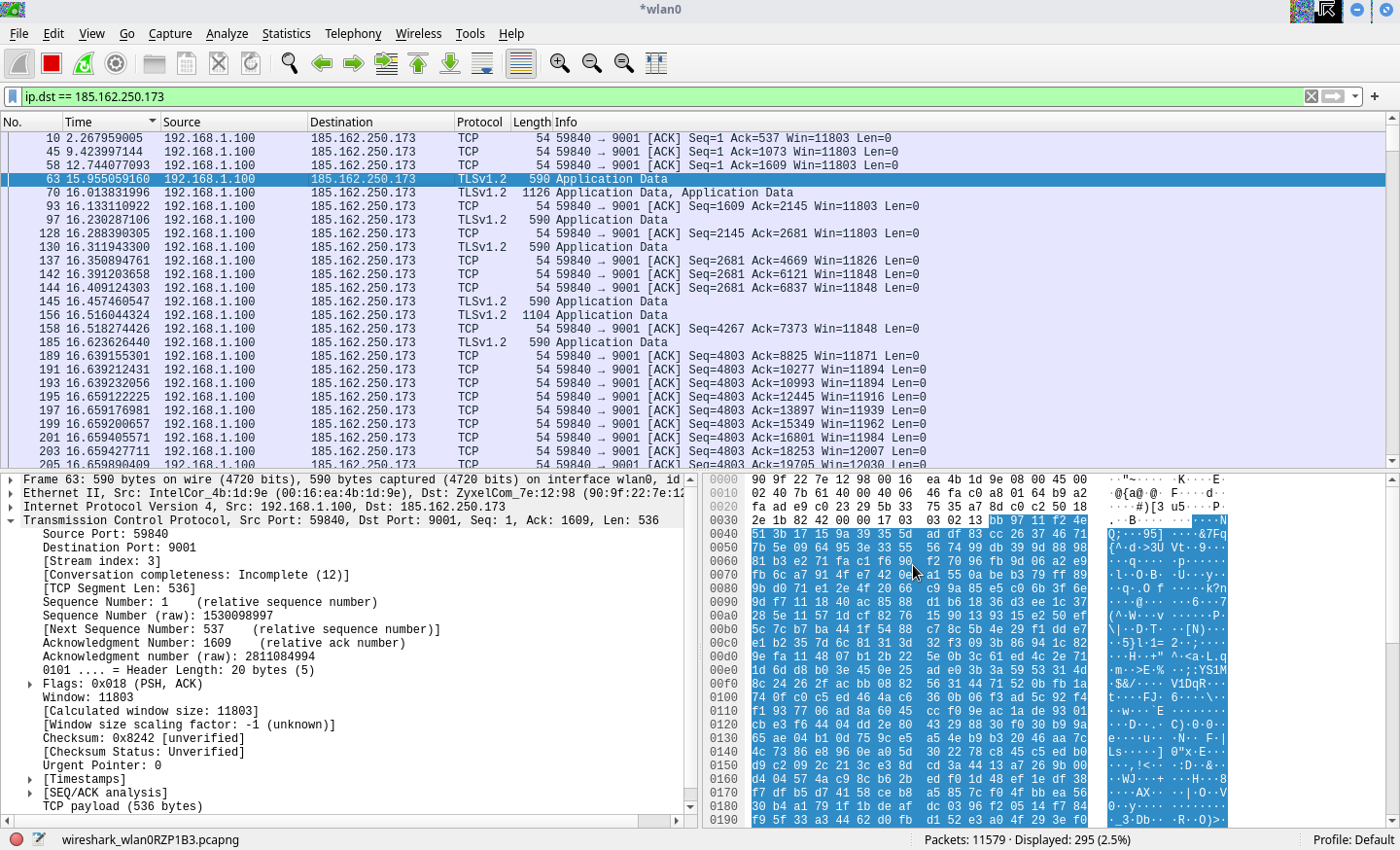 tcp ESTAB 0 0 192.168.1.100:57728 185.246.86.175:9001 users:((“tor”,pid=1143,fd=16))