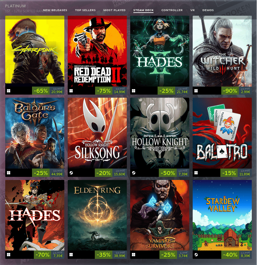 mr_MADAFAKA@lemmy.ml to Steam Hardware@sopuli.xyz · 12 days agoMost Played Games on Steam Deck for 2025lemmy.mlimagemessage-square76linkfedilinkarrow-up1348arrow-down12file-text